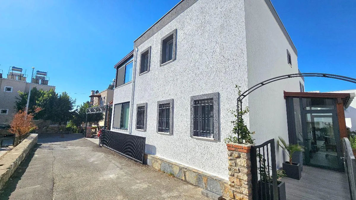 BODRUM BİTEZ'DE SATILIK ÖZEL HAVUZLU TAM MÜSTAKİL MERKEZİ SIFIR VİLLA .- Satılık olan villamız Bodrum Bitez'de bulunmaktadır. .- Müstakil villadır. İkiz yada yapışık villa değildir. .- 612 m2 arsa üzerine inşaa edilmiştir. .- 450 m2 kullanım alanına sahiptir. .- 4 oda, 1 salon, 1 açık mutfak ve 5 banyo tuvaletten oluşmaktadır. .- 4 oda dışında en alt katta yaklaşık 130 m2 kullanım alanına sahip, kaba inşaatta olan ayrı bir alan bulunmaktadır. .- Ayrıca ayrı girişli, yaklaşık 50 m2 büyüklüğünde, müştemilat olarak kullanılabilecek ayrı bir alan daha vardır. .- Site içinde değildir. Tam müstakildir. .- Doğa manzaralıdır. .- Yeni yapılmış olup sıfırdır. .- İskanları alınmıştır. .- Eşyasız olarak satılıktır. .- Isıtma ve soğutma VRF merkezi iklimlendirme sistemi ve yerden ısıtma ile sağlanmaktadır. .- Salonda ayrıca şömine de vardır. .- Villamızın kendine ait geniş bahçesi, özel yüzme havuzu ve özel otoparkı mevcuttur. .- Merkezi konumundan ötürü yaz kış yaşanabilir. .- Kapının önüne kadar araçla gelinebilir..- Satış fiyatımız 2.150.000 Dolardır. .