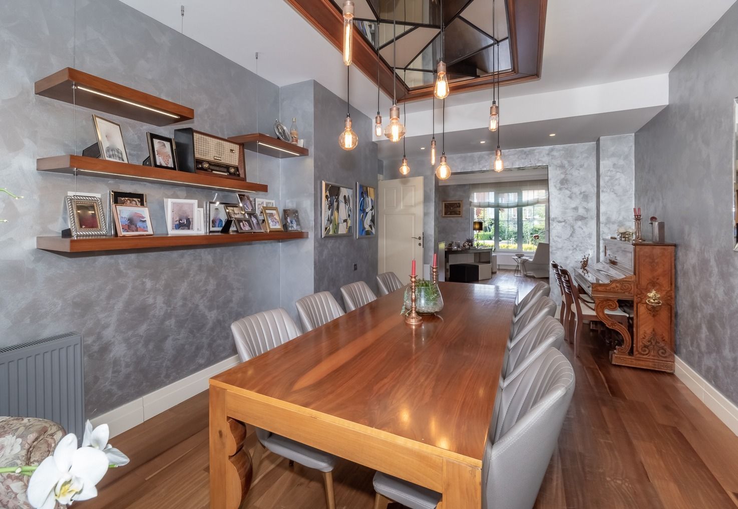 This stunning display of stylish design villa boasts a luxurious concept that is evident from the moment you step inside. It also allows you to live in a comfortable and peaceful atmosphere with its private garden. You can have the ideal atmosphere with your loved ones. The charming atmosphere of the villa is enhanced by its valuable location, which provides easy access to transportation options and a range of amenities. Top quality materials have been used throughout, ensuring that every detail exudes elegance and sophistication. With a 7+1 concept and 430 sqm gross area, there is plenty of space for friends and family to enjoy, making it the perfect place for entertaining guests. This villa not only fascinates those who see it with its size, but also amazes those who see it with its magnificent design details. It adds value to your life with its aesthetic design details, high-end materials and useful features. The spacious interior design of the villa offers you all the space you need. It includes laminate parquet, elegant bathrooms, spotlights, double-glazing windows, and high quality ceramic floors. At the same time, the functional designs of the living room and kitchen make crowded meals or meeting with friends more enjoyable. The expansive windows and doors filter lots of natural light and invite relaxation with generous living spaces and a seamless flow allowing for integrated indoor and outdoor living! The villa has a storage, study room and a garage that leads directly to the villa with stairs and elevator.