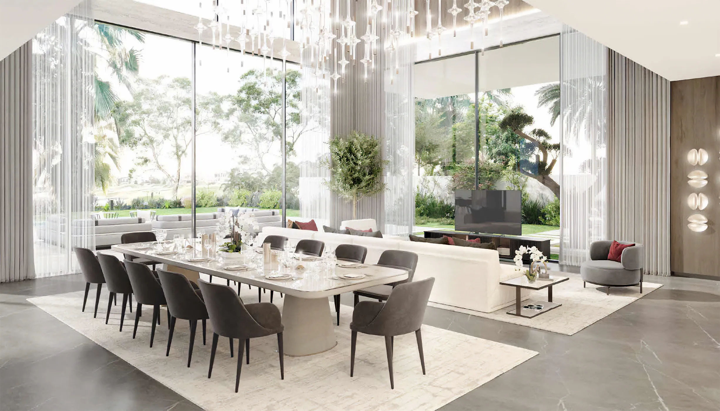 Mega Villas welcomes you to experience large-scale family life. Damac Properties' large 5-bedroom havens provide sprawling areas for your loved ones to thrive, perfectly mixing contemporary style with modern conveniences. Imagine waking up to the delicate whisper of palm fronds and the vivid green tapestry of your backyard paradise, the Trump World Golf Club. Mega Villas is more than simply a housing development; it's a dynamic community woven into the fabric of nature, with every feature - from dazzling pools to lush gardens - designed to foster connections and generate memorable experiences. Discover a life where spacious living meets the energetic pulse of a flourishing community, all in the heart of Dubai's attraction.
