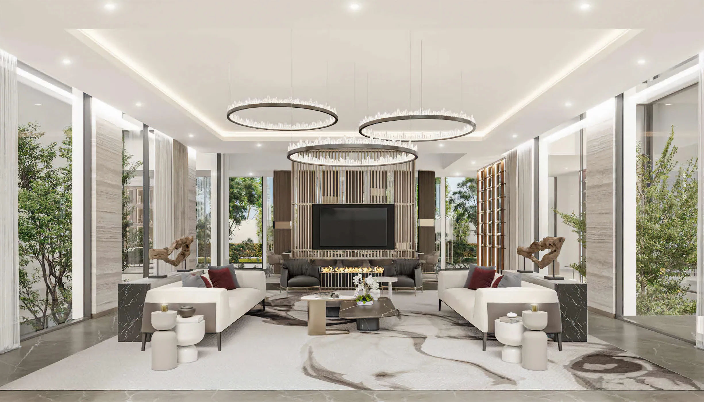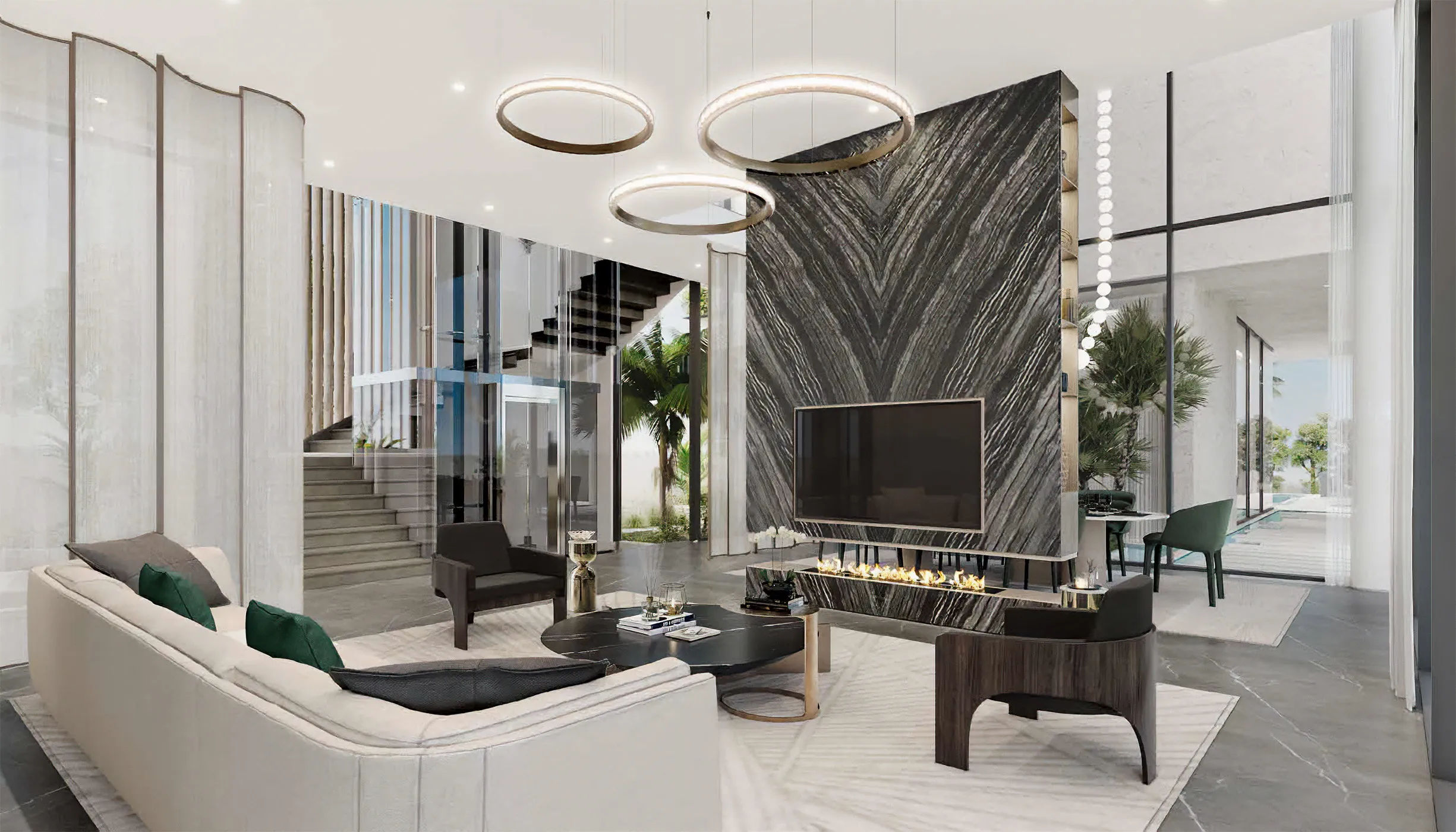 Mega Villas provide an unparalleled combination of luxury and family-friendly living. These enormous 5-bedroom havens have contemporary decor, cutting-edge amenities, and private gardens, all surrounded by the serenity of lush flora. Imagine relaxing in your infinity pool with a view of the tranquil nature as your children play in the nearby playgrounds. The prime location of Mega Villas allows for easy access to Dubai's lively hotspots while also providing a refuge of solitude and relaxation.