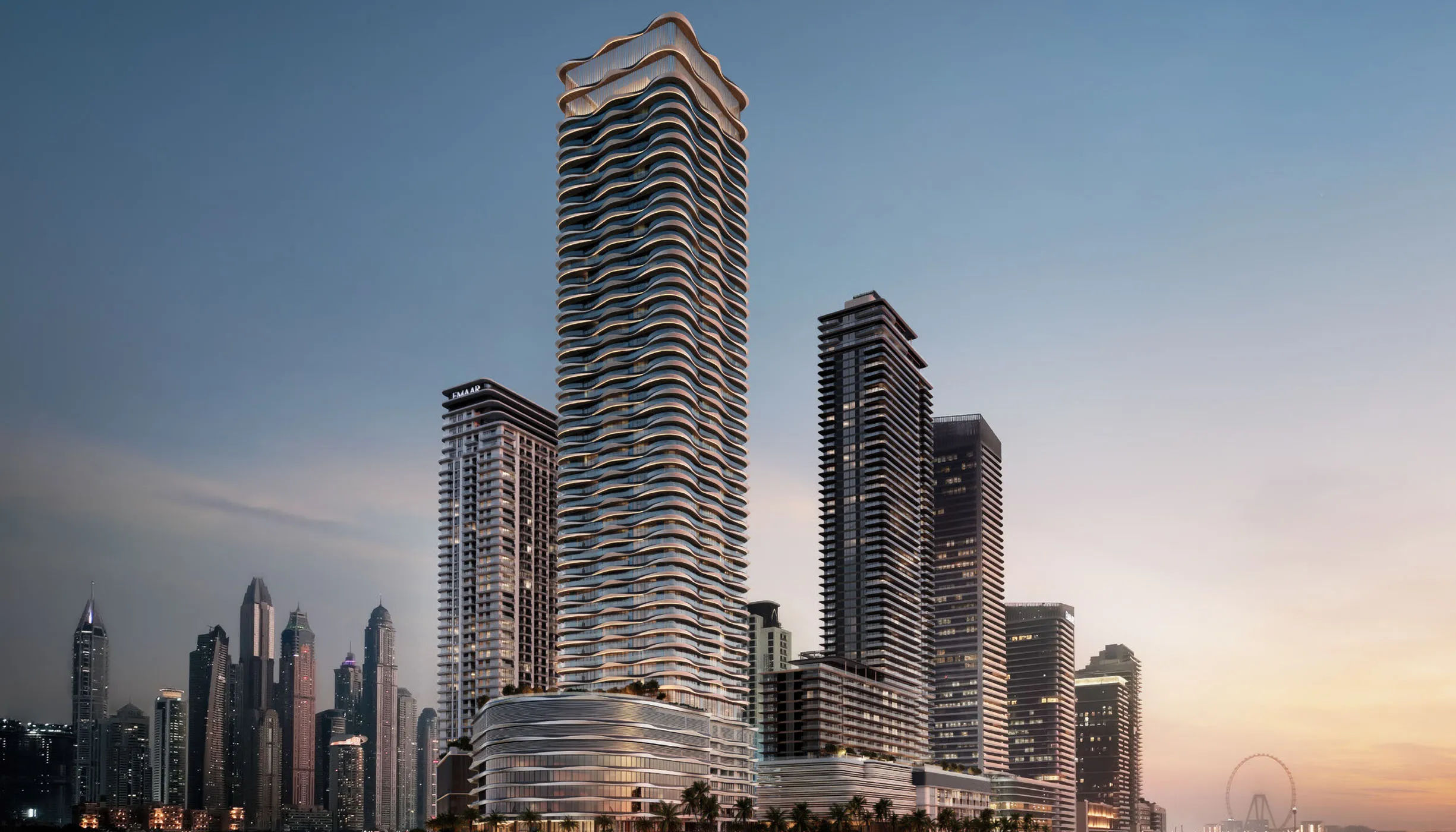 Sunrise Bay offers luxurious waterfront living in Dubai Harbour, featuring two elegant 26-story towers connected by a podium. Residents enjoy a selection of sophisticated 1, 2, 3, and 4-bedroom apartments with high-quality finishes, open kitchens, floor-to-ceiling windows, and spacious terraces boasting stunning views of the sea and Dubai Marina.