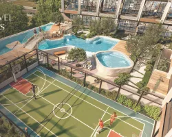 The development offers a selection of studios, 1-bedroom, and 2-bedroom apartments, each designed for elegant living with modern layout, high-end kitchens, and select units featuring private swimming pools.