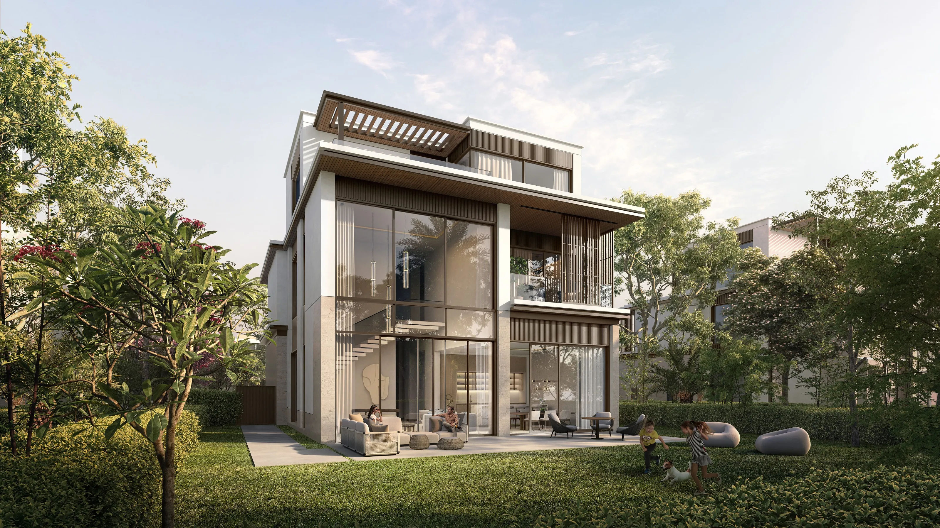 - 4 ila 7 Yatak Odalı Müstakil Villalar: Bu konutlar lüksün zirvesini temsil eder. Üç katlı (G+2) olan bazı düzenlemelerde özel asansörler, aile salonları ve geniş çatı terasları bulunur. Villalar, yemyeşil doğanın ve ikonik Dubai silüetinin muhteşem manzaralarını sunacak şekilde konumlandırılmıştır.