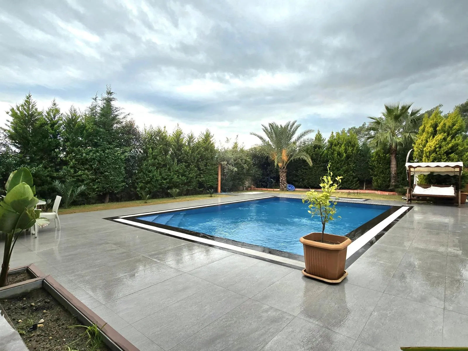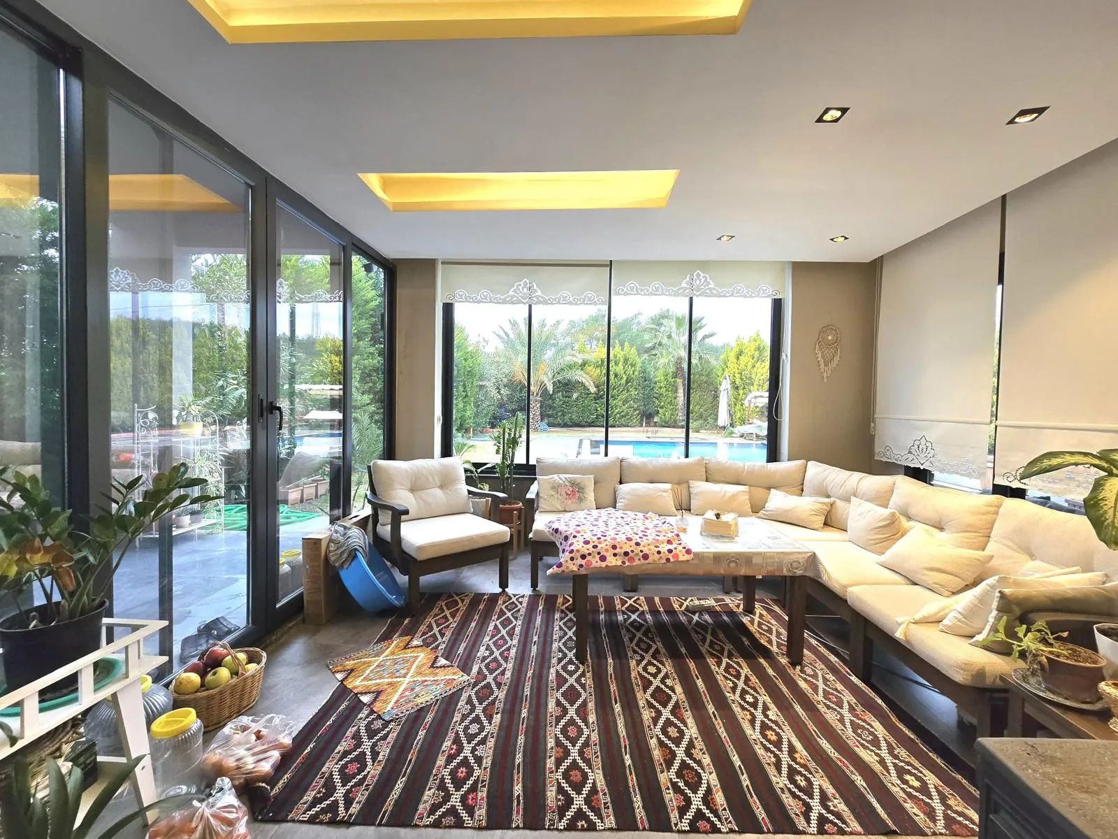 Ortak kullanım havuzuna sahip villamız, marketlere, restoranlara ve