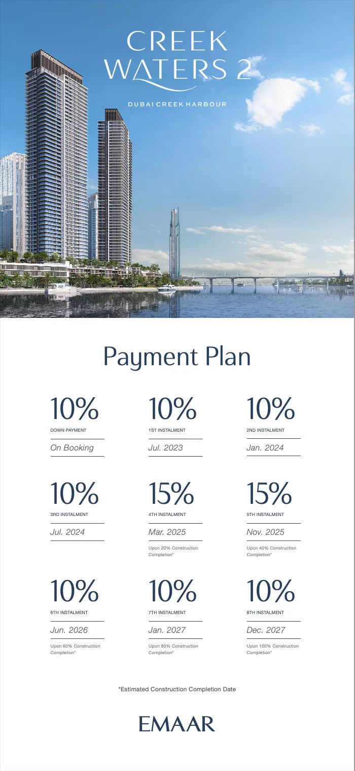This pricing reflects Creek Harbour’s desirability as a waterfront address with strong investment potential relative to its proximity to Downtown Dubai, the airport, and leisure amenities.