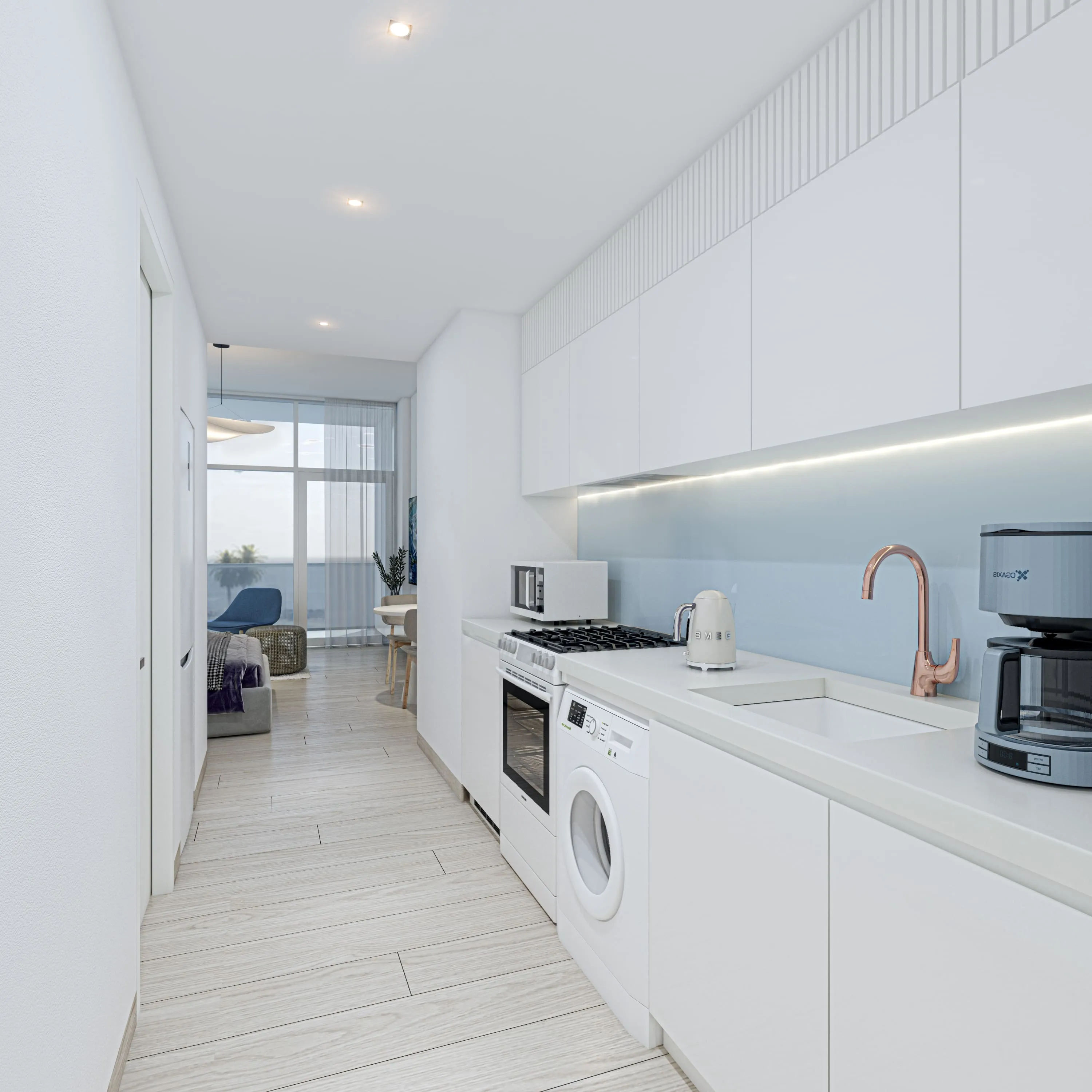 EDGE boasts a yacht-inspired design with elegantly crafted finishes of glass and stone, and well-aligned, spacious balconies offering panoramic views of the lagoon, coastal surroundings, and the city skyline. EDGE offers a diverse range of units including studios, 1 and 2-bedroom apartments, and 2-bedroom penthouses. The project emphasizes modern living with smart home systems and fitted kitchens, all within a tranquil, pet-friendly environment that seamlessly blends urban sophistication with the serene essence of coastal life, enhanced by lush landscapes and protected mangroves.