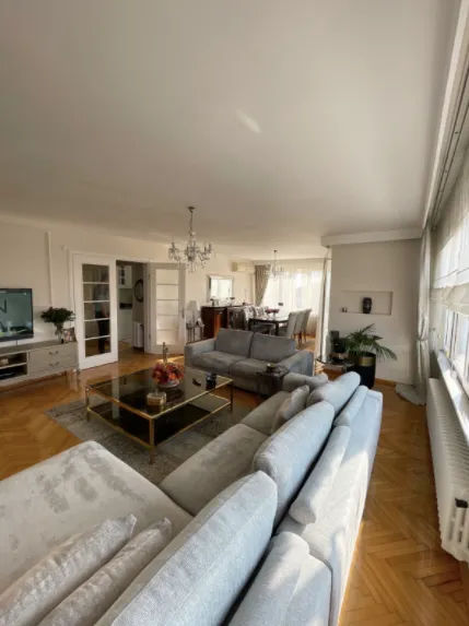 This apartment has a 3+1 concept and the total living space is 270 sqm providing a spacious area for you and your family. You can have the living space you desire with the luxury and comfort standards of the apartment, every detail of which is designed to add value to your life. The use of high-quality materials not only adds to the aesthetic appeal of the renovated apartment, but also increases its investment value. Marvellous kitchen with stainless steel appliances, beautiful countertops and plenty of storage space has a dining area. The large open living room is flooded with natural light. The expansive living areas provide ample space for relaxation and entertainment, while the charming Bosphorus view adds a touch of enchantment to every moment spent here. You will love spending time with family and friends in the large family room. The hall separates the three spacious bedrooms from the living room and dining area, making it more peaceful. The master bedroom with its en-suite bathroom and dressing room offers a tranquil atmosphere thanks to the sound insulation applied to the ceiling. The bathrooms have the necessary fittings and fixtures installed and a gorgeous walk-in shower filled with stunning modern floor and wall tiling. There are completely renovated electrical and water installations. This apartment is located in a safe environment and close to all kinds of commerce and services such as international schools, banks, pharmacies and hospitals. It is set in a fantastic location close to the transport links of Istanbul as well as local green spaces and good shopping centres in the area.