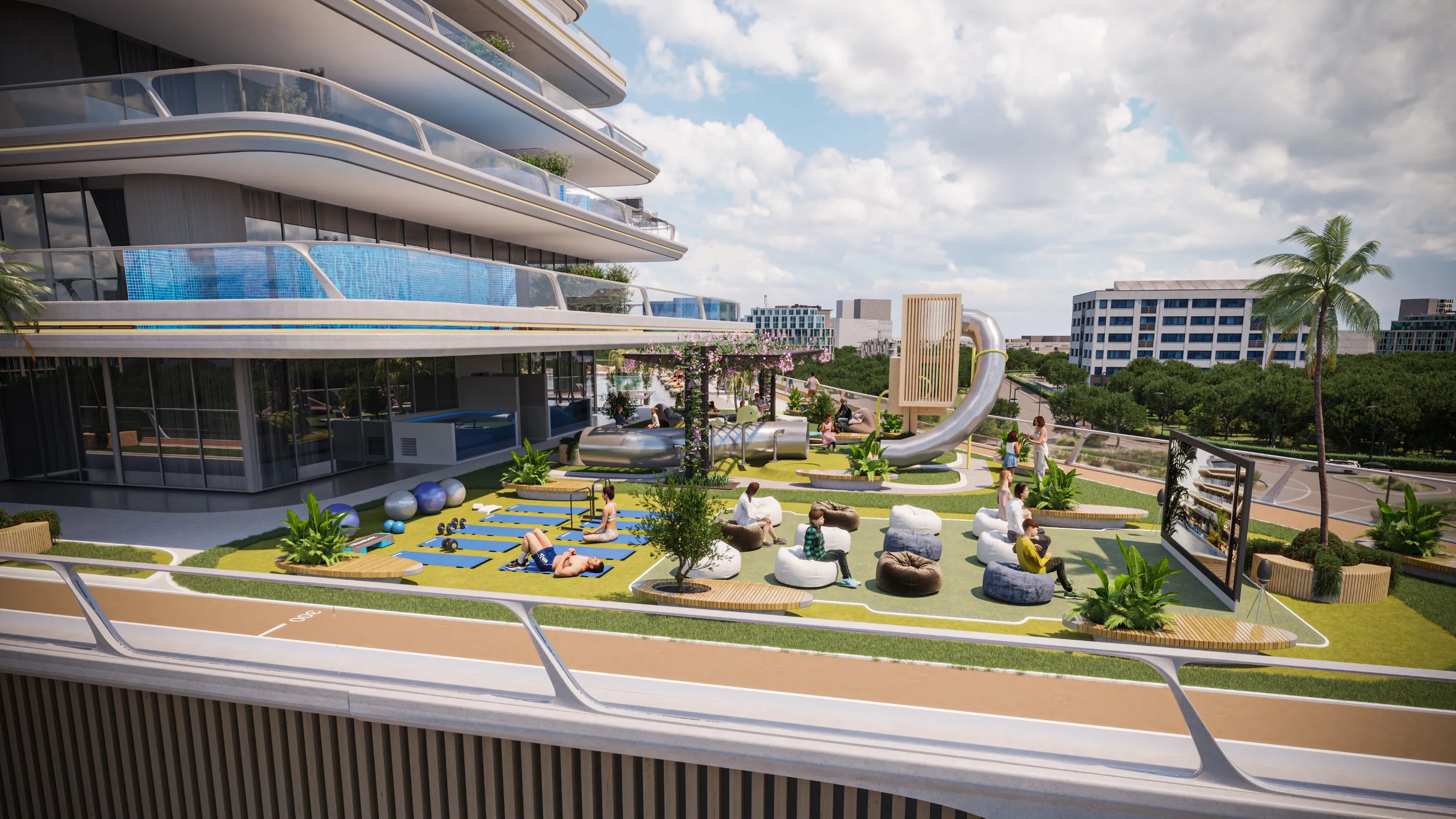 Equiti Arcade features a modern architectural design in a 16-storey tower (B+G+2P+13+R), offering freehold 1, 2, and 3-bedroom apartments. Units are designed for modern urban living, featuring high-quality finishes, built-in wardrobes, fully equipped kitchens, and spacious layouts that maximize natural light. Select first-floor units boast large terraces, while the rooftop provides stunning panoramic city views.