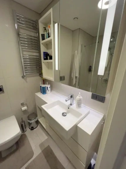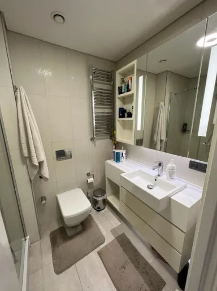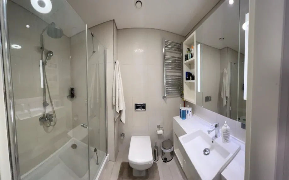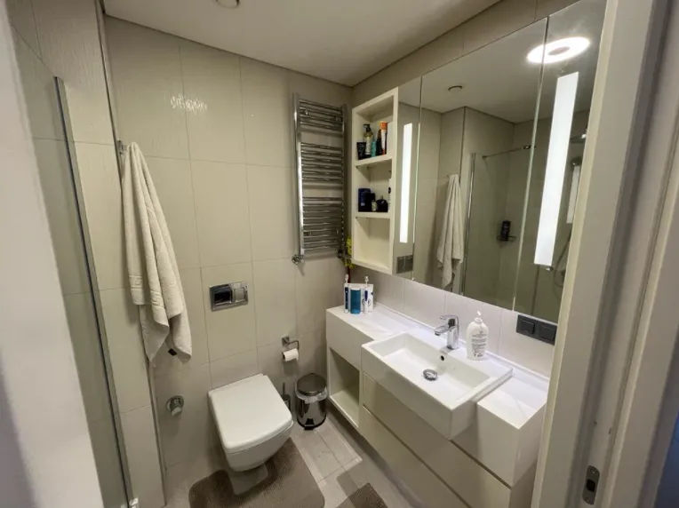 Skyland Istanbul is a twin skyscraper located in Sarıyer, Istanbul. With a height of 285 meters and 65 floors, it is the tallest building in Istanbul, and the eighth tallest building in Europe. Skyland Istanbul expands Istanbul under your feet with its 360° view. Unique experiences, comfort and technology in all! In addition to social facilities, such as a concierge, a fitness and wellness center, and a swimming pool, a fascinating view of Istanbul awaits you at Skyland Istanbul. Besides smart home technologies, the city’s largest oxygen source, the Belgrade Forest, is located right next to Skyland Istanbul. This exclusive residence offers a 4+1 apartment with 260 sqm living area. It is on the 13th floor with a great view. You can have the privileged life you desire with the luxury and comfort standards of the residence, every detail of which is designed to add value to your life. The living space gets plenty of light thanks to the floor to ceiling windows. The bathrooms have the necessary fittings and fixtures installed and a gorgeous walk-in shower filled with stunning modern floor and wall tiling. The use of high-quality materials not only adds to the aesthetic appeal of the property, but also increases its investment value.