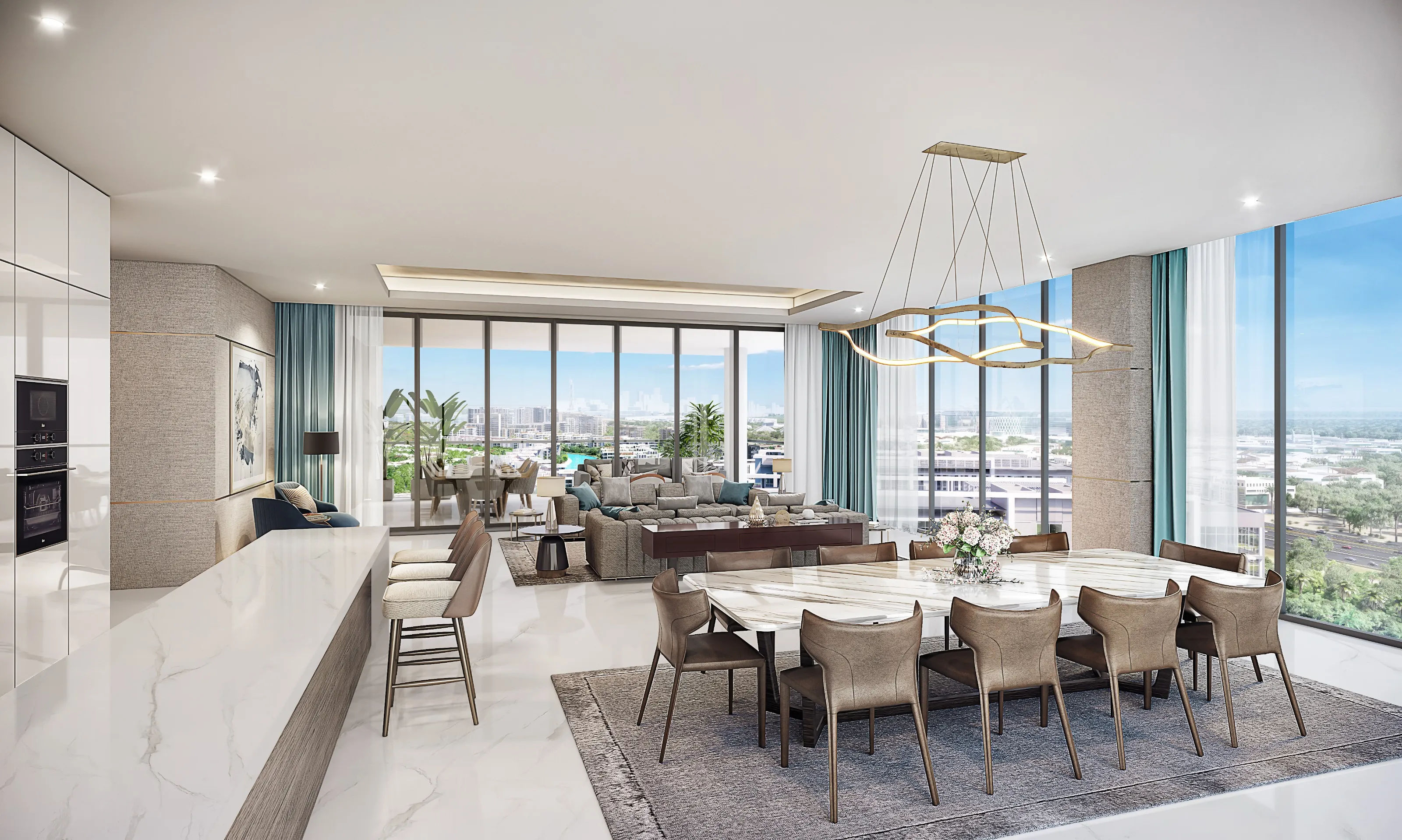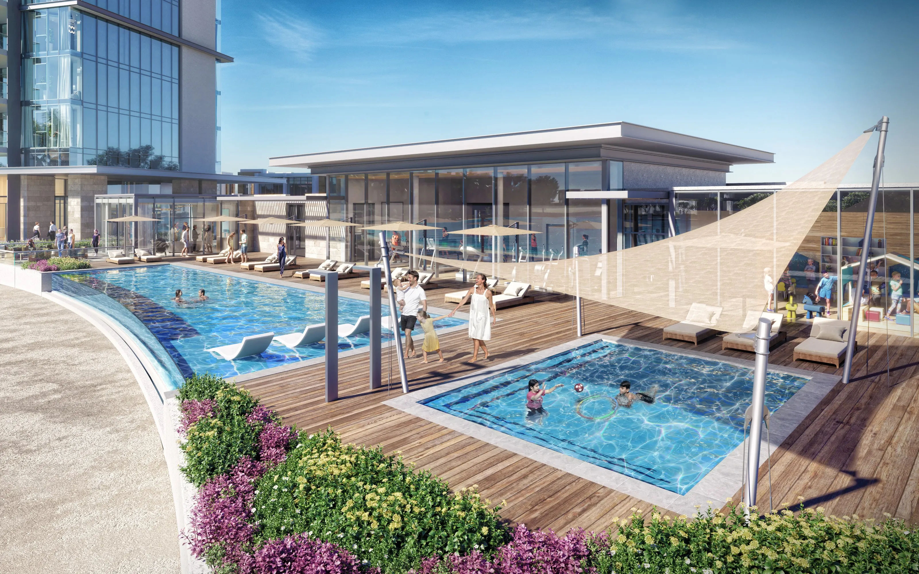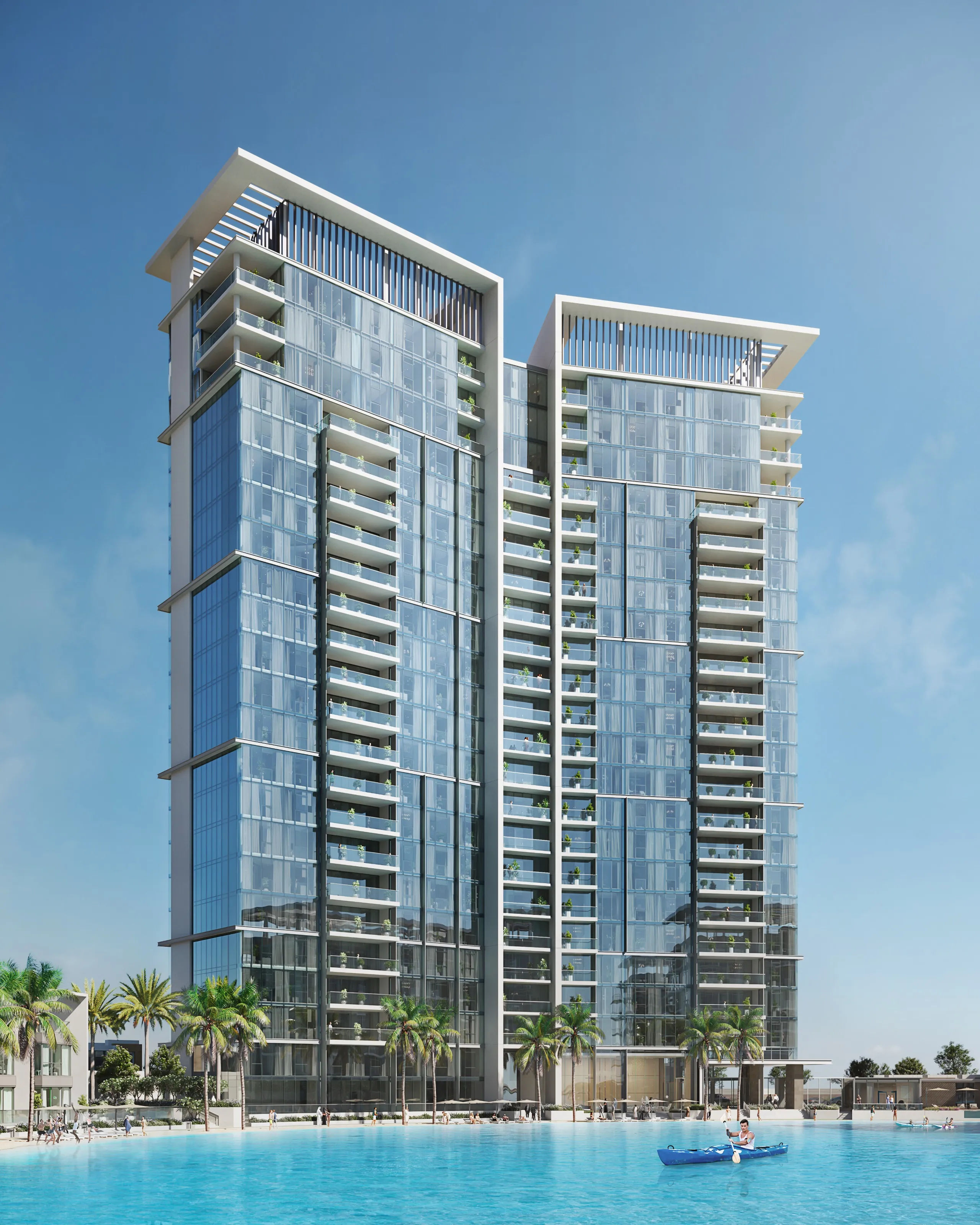 The project offers 2-bedroom and 3-bedroom apartments with smart-home features, premium finishes, and a full suite of lifestyle amenities.