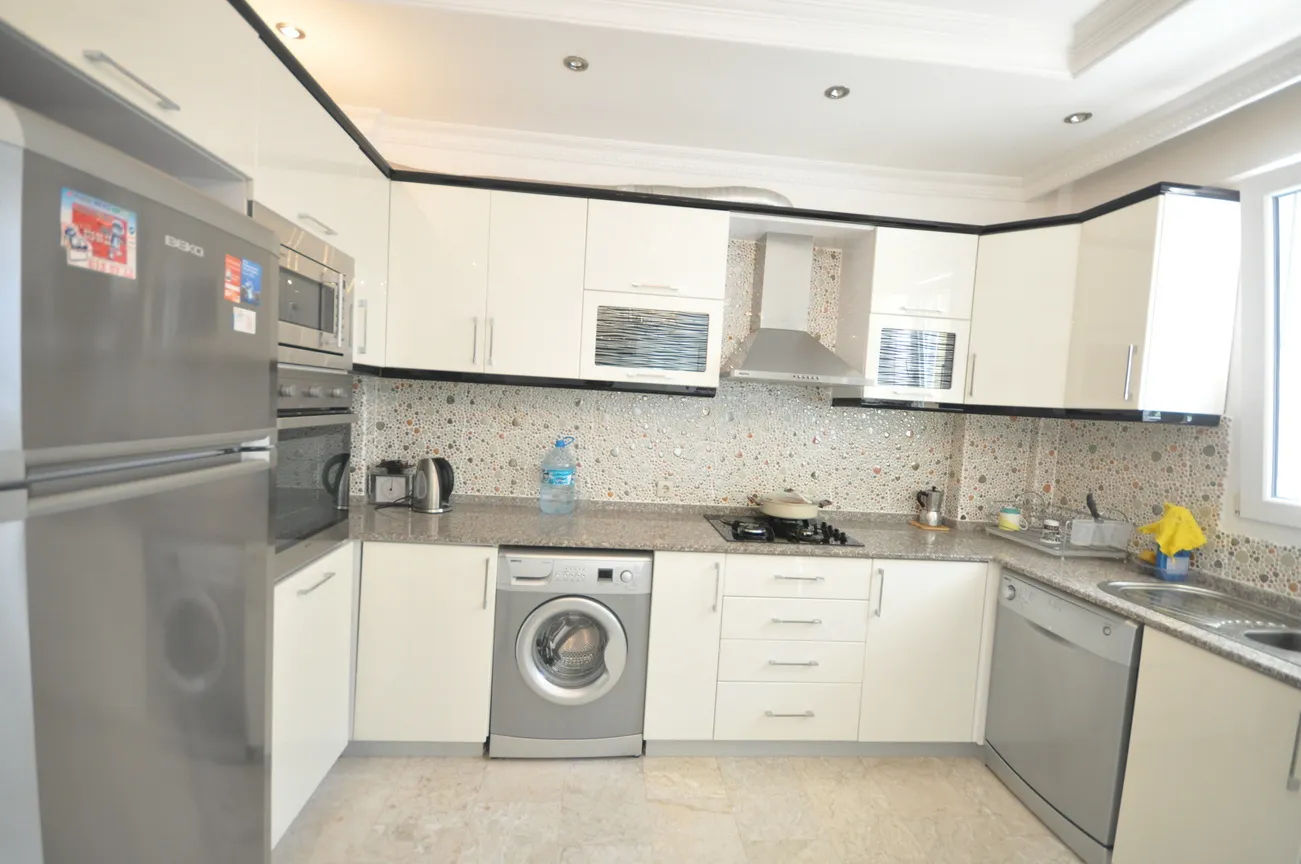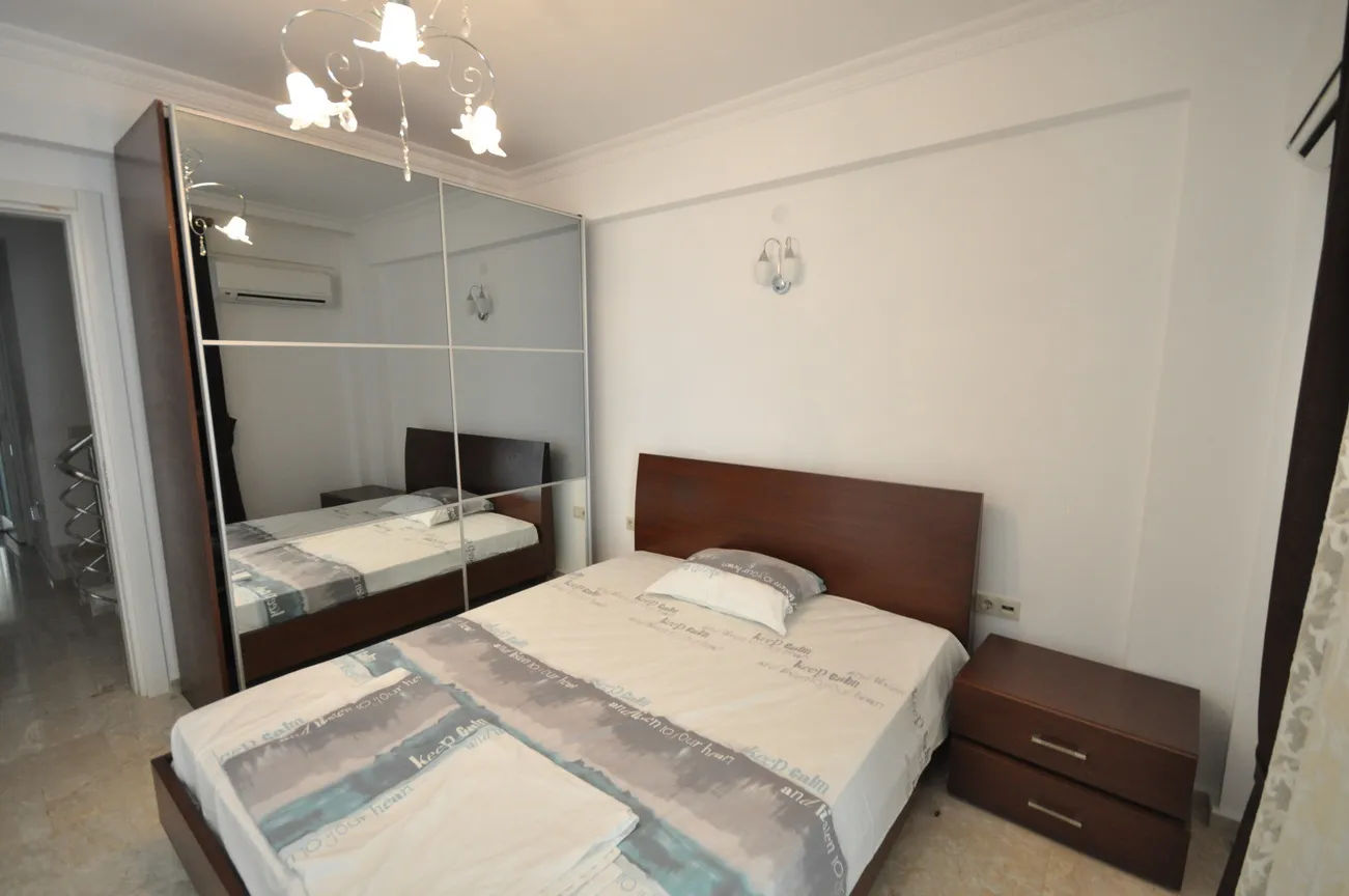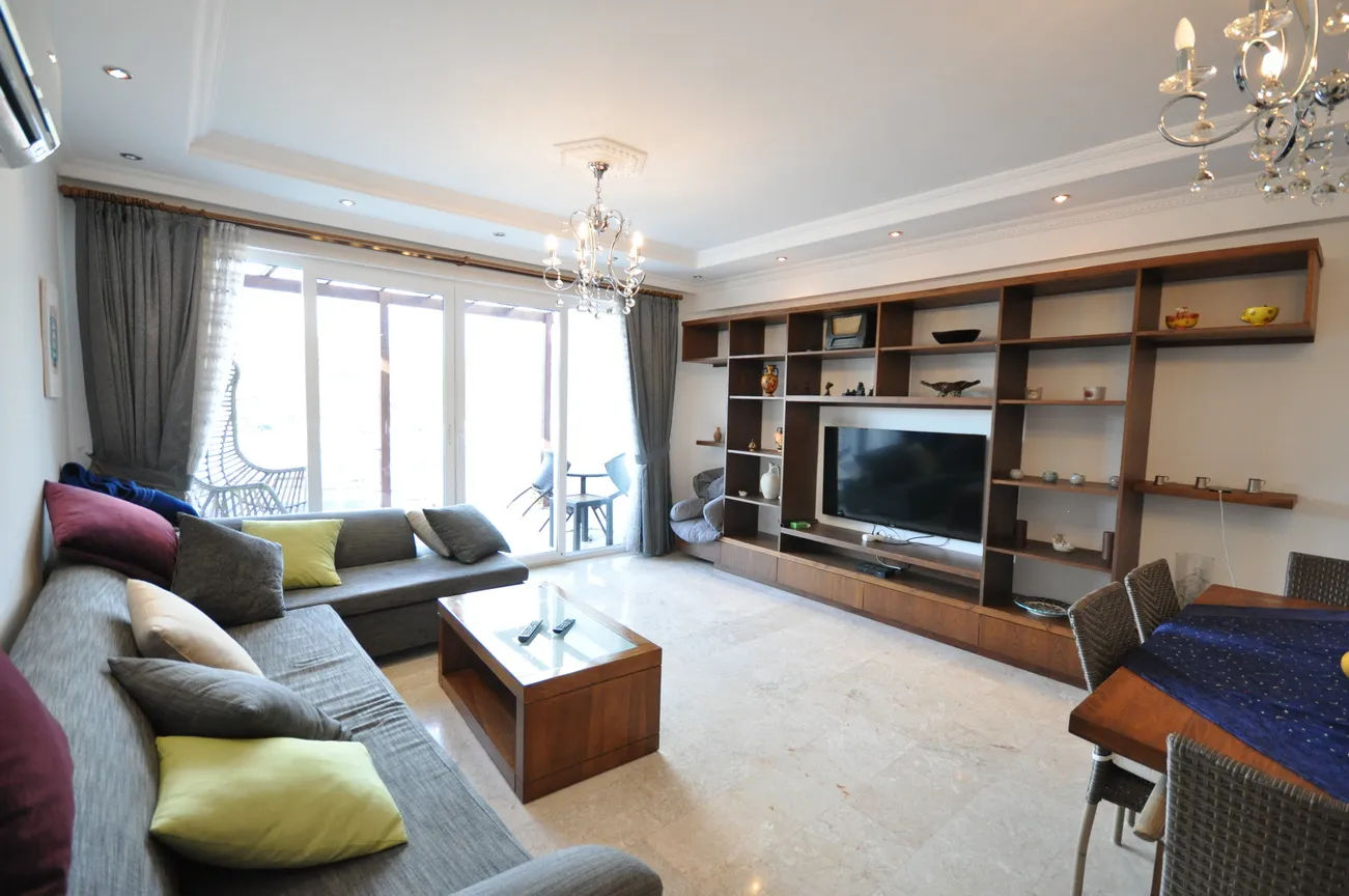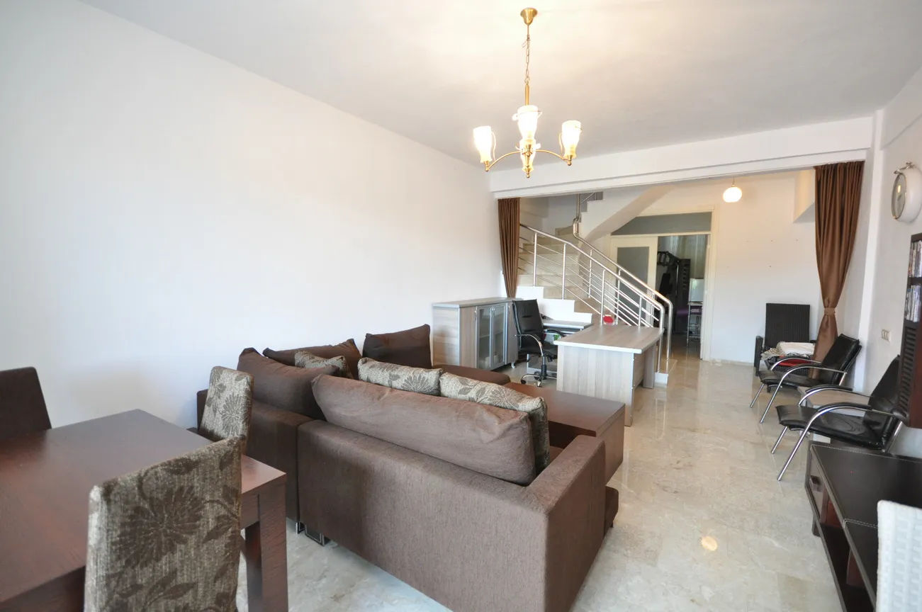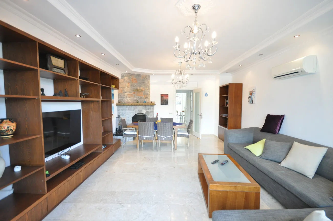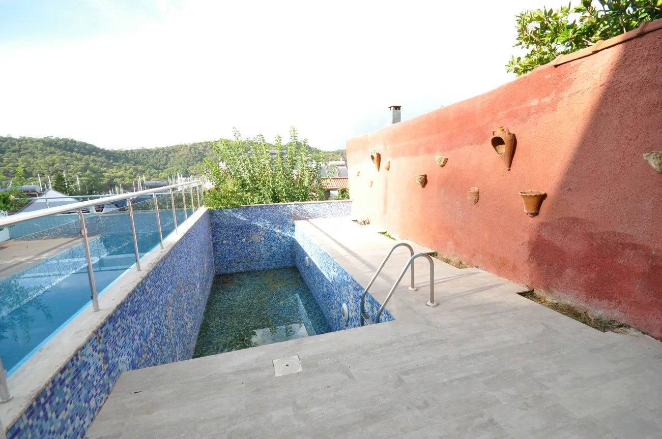 This sea-view villa for sale in Fethiye offers 120 sqm of living space in the sought-after harbor district of town. On the living floor, you can enjoy the wonderful view of Fethiye both in winter and in summer, with a large living room and kitchen, and a large front terrace.The furnished living room is also open to a generous size balcony dominating the whole view ahead. This area is perfect for gathering and spending quality time inside. Decorated with an elegant taste, the kitchen with an abundance of storing areas for all your kitchen items is separated. Furthermore, the lower ground floor where the swimming pool and sunbathing area are situated, so you can sunbathe as you wish, away from foreign eyes, and enjoy Fethiye, which is sunny for 300 days a year.