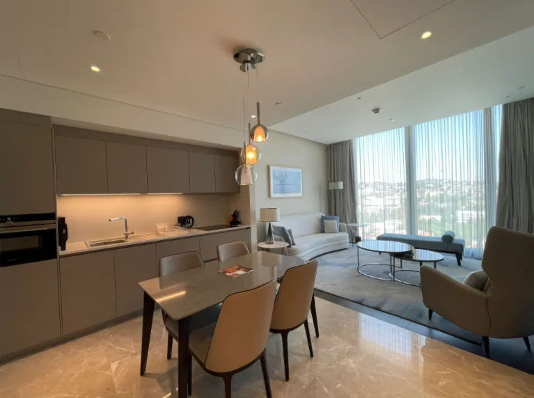 These 197 fully furnished residences with from 1 to 3 bedrooms and 123 luxury residences at The Address Residence Sky View Istanbul, with areas ranging from 1 bedroom to 5 bedroom units, as well as luxury penthouses. Each of these spectacular residences, offering its owners unmatched luxury lifestyles, also enjoys the exclusive convenience of round-the-clock access to The Address Hotel’s five-star service seven days a week.