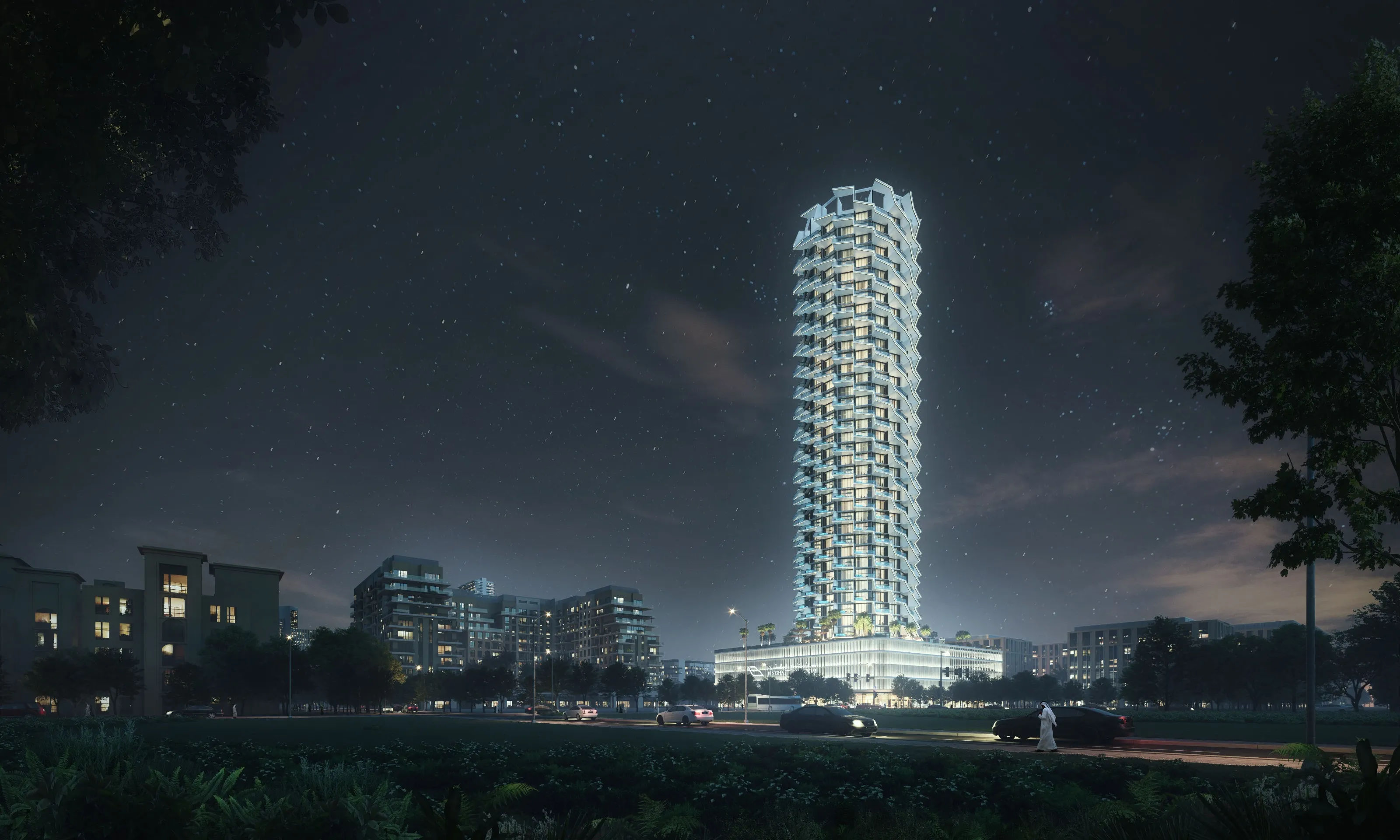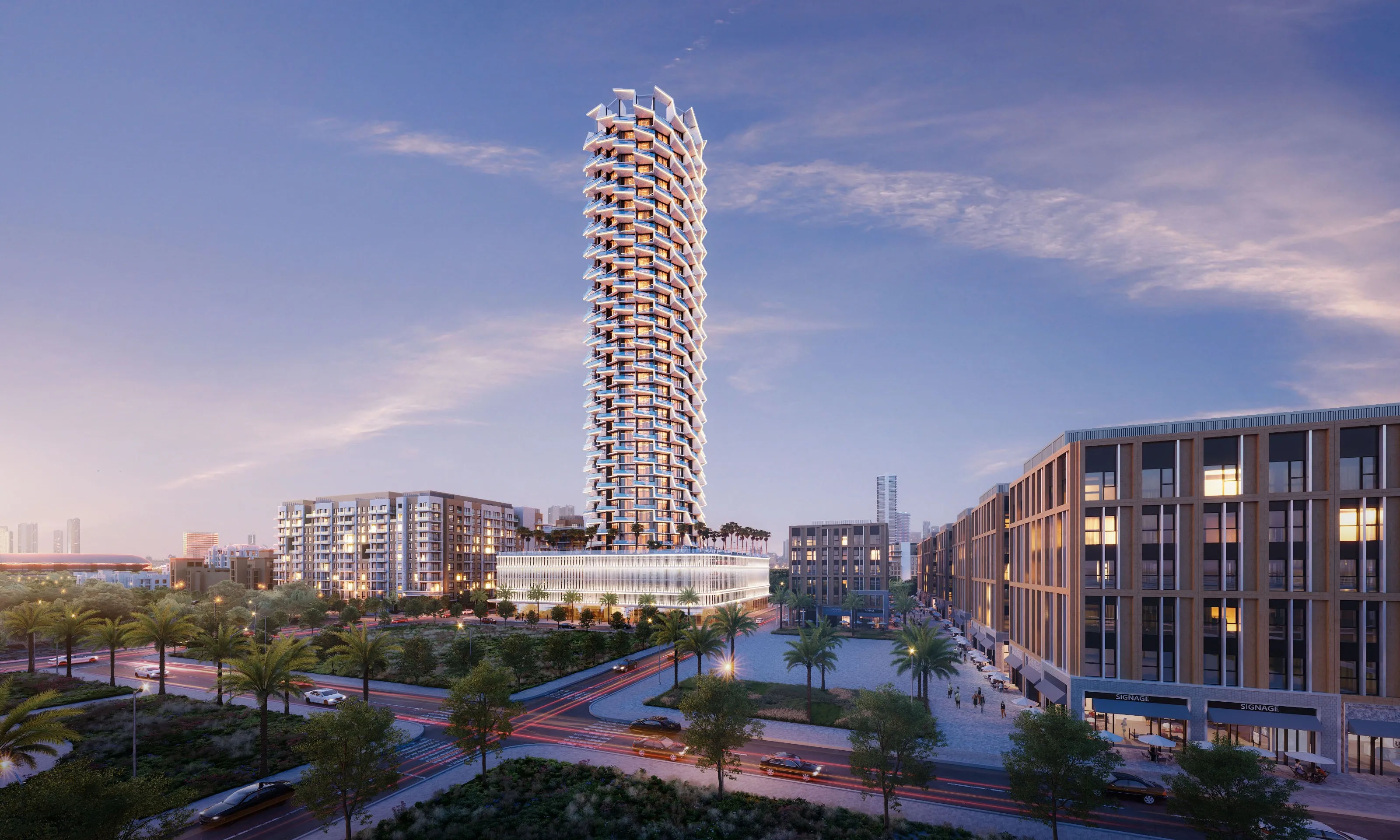 7 Park Central, Dubai'nin popüler Jumeirah Village Circle bölgesinde yer almaktadır.