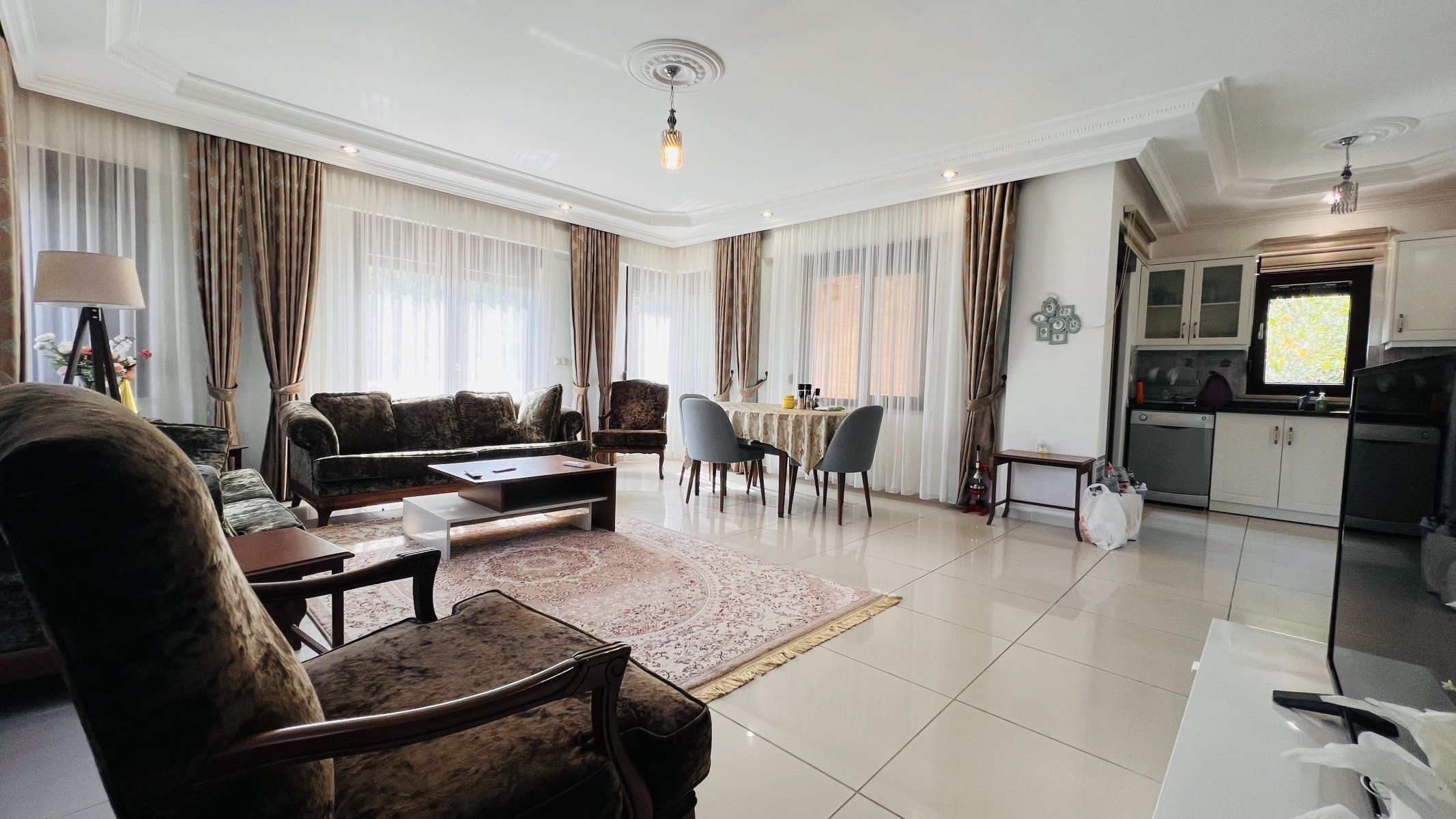 Satılık villa plaja 500 m, alışveriş merkezine 200 m, Kemer merkeze 17 km ve Antalya Uluslararası Havalimanı'na 77 km mesafededir.